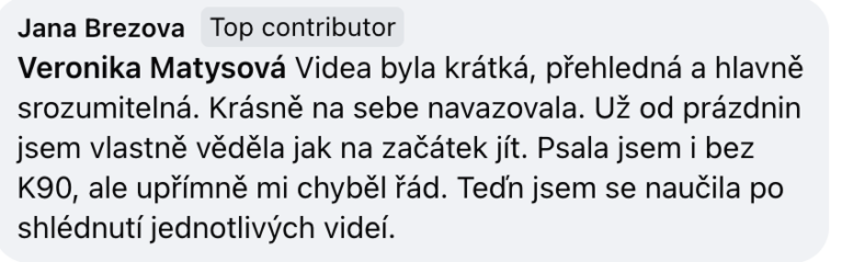 Kurz je k samostudiu, což je výhoda zejména pro ty z vás, co byste stejně FB skupinu či Zoomy nevyužívali.